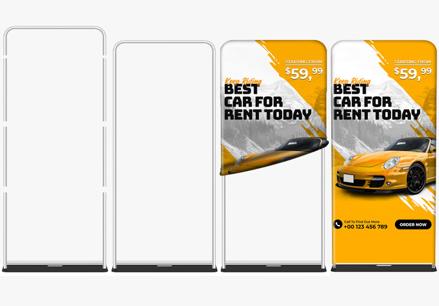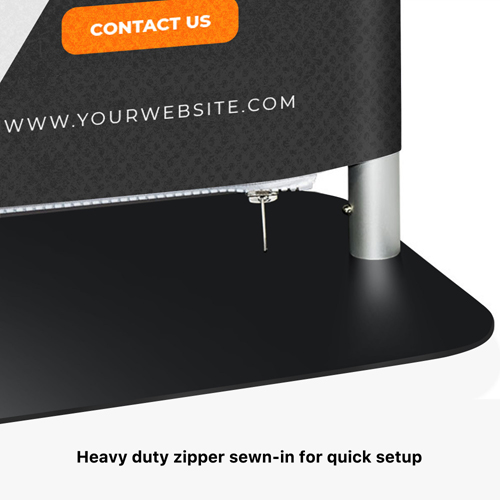 3. To wrap the fabric banner on the frame and zip up, afterwards install whole display stand to the base.